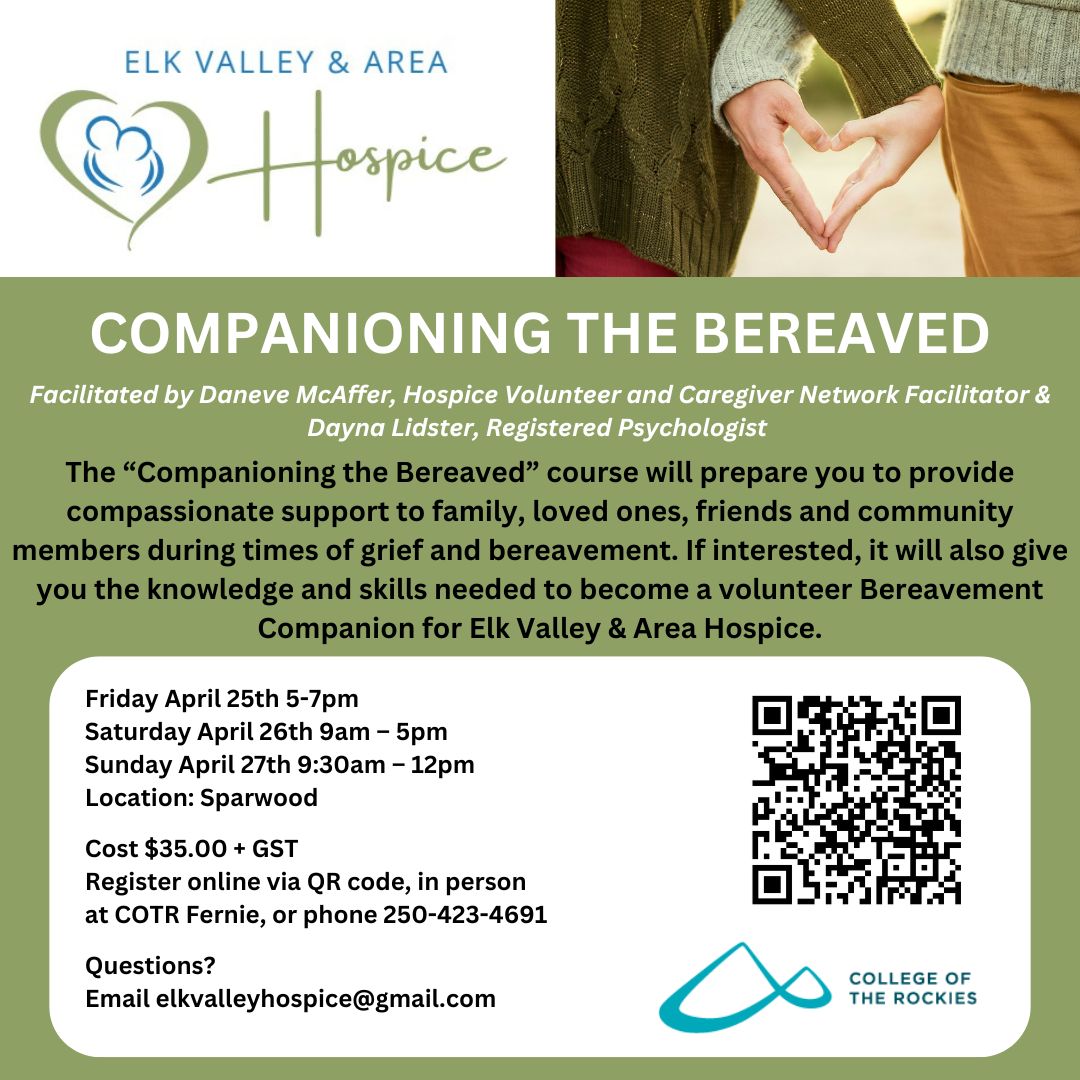 Upcoming Hospice Training Course in Sparwood! Would you like to learn more about how you can support those closest to you during times of grief…